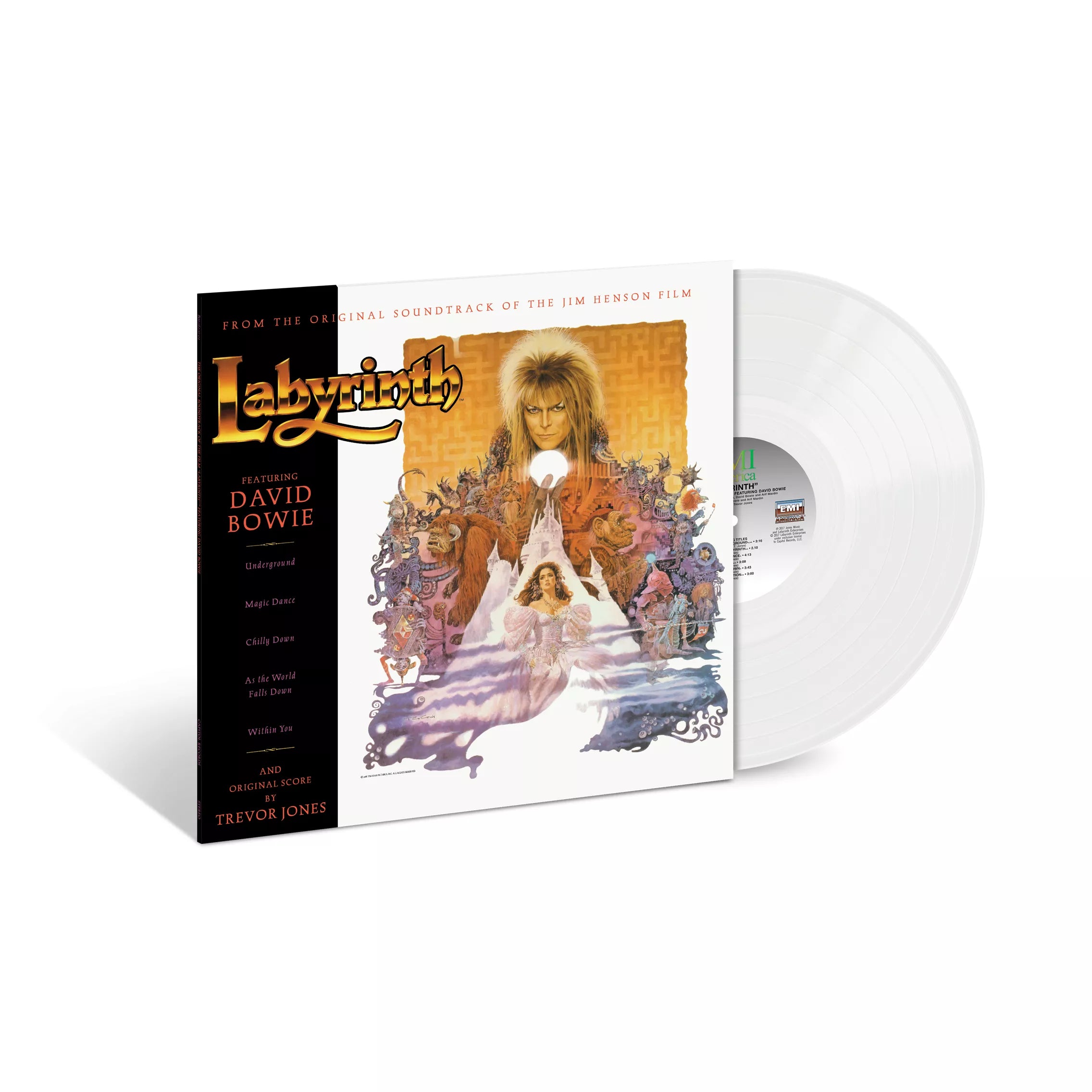 Original soundtrack to the Jim Henson film. An imaginative 16-year old girl is given 13 hours to solve a labyrinth and rescue her baby brother when her wish for him to be taken away is granted by the Goblin King. Starring David Bowie and Jennifer Connelly. Labyrinth was the second of three soundtrack releases in which Bowie had a major role, following Christiane F. and preceding The Buddha of Suburbia. The soundtrack album also features Trevor Jones' score, which is split into six tracks for the soundtrack: "Into the Labyrinth," "Sarah," "Hallucination," "The Goblin Battle," "Thirteen O'Clock," and "Home at Last." 1LP on crystal clear vinyl.