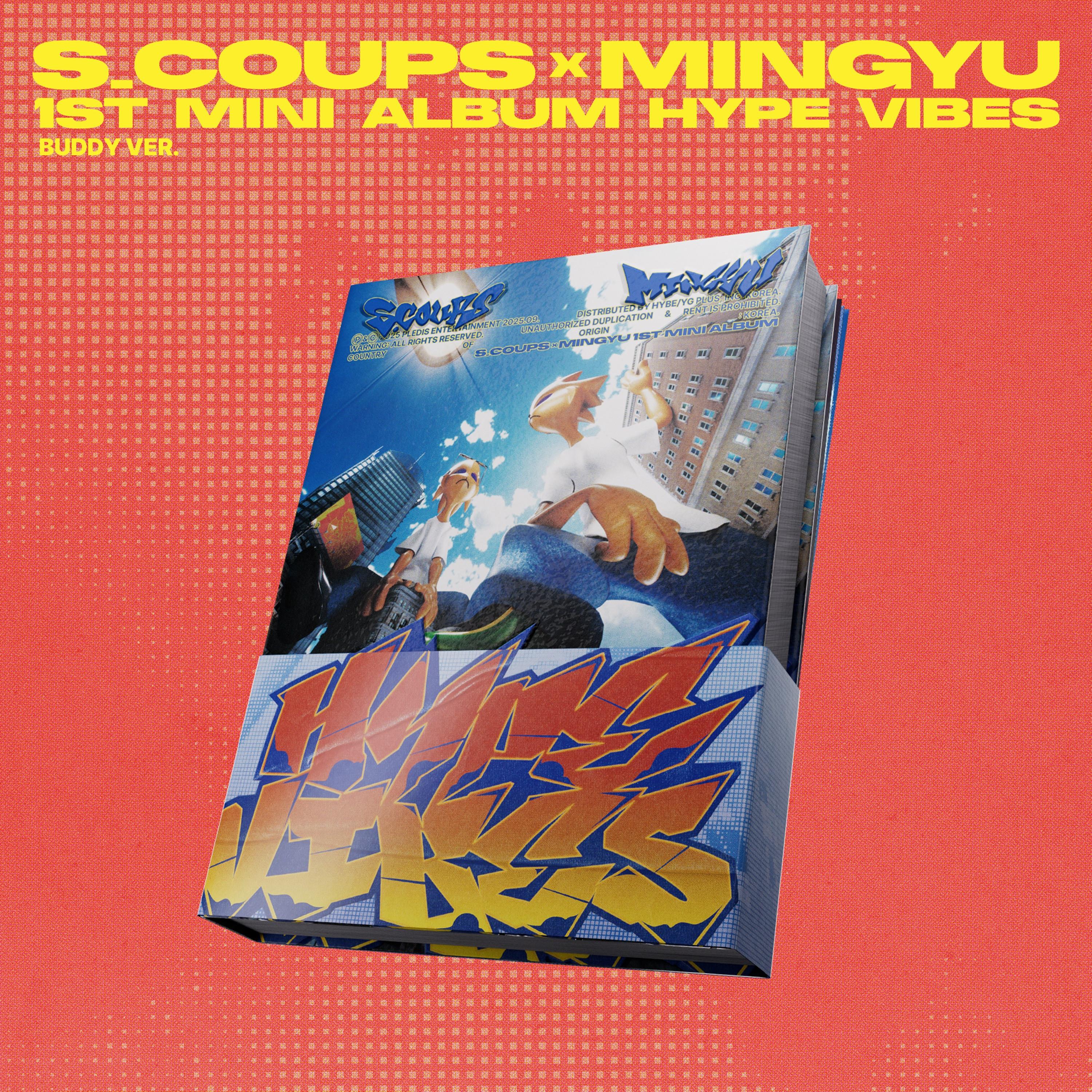 New subunit from global K-Pop group SEVENTEEN has arrived – CxM (S.COUPS x MINGYU) release their 1st Mini Album titled ‘HYPE VIBES’ – available in two versions: buddy Ver. and combi Ver. Contents of the album include: CD, CD Envelope, Book Band, Photo Book (350pg), Credit Sticker, Folded Poster, Photo Card (1 of 4), Photocard – Unit Ver, Lyric Card and Retail Exclusive: Photo Card (1 of 2). Dimensions: 135 x 101.5 x 26 mm.